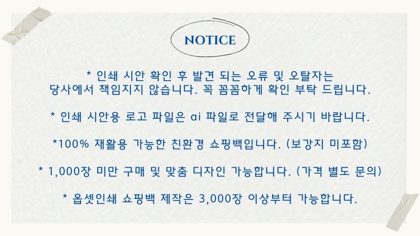 - Àμ⸦ ÇϽô °æ¿ì, ´ç»ç¿¡¼´Â °í°´´ÔÀÌ º¸³»ÁֽŠ¿ø°í ¹× µµ¾ÈÀ» ±âº»À¸·Î ÇÏ¿© Çʸ§À» Á¦ÀÛÇϰí, Á¤È®¼ºÀ» ±âÇϱâ À§ÇØ °í°´´Ô°ú ÀçÈ®ÀÎ ÈÄ ½ÇÁ¦ Àμâ ÀÛ¾÷À» ÇÕ´Ï´Ù. (ÃÖÁ¾ µðÀÚÀÎ ½Ã¾ÈÀÇ À߸øµÈ È®ÀÎÀº Ã¥ÀÓÀÌ ¼ö¹ÝµÇ¹Ç·Î Á¤È®ÇÏ°Ô È®ÀÎÇÏ¿© Áֽñ⠹ٶø´Ï´Ù.)